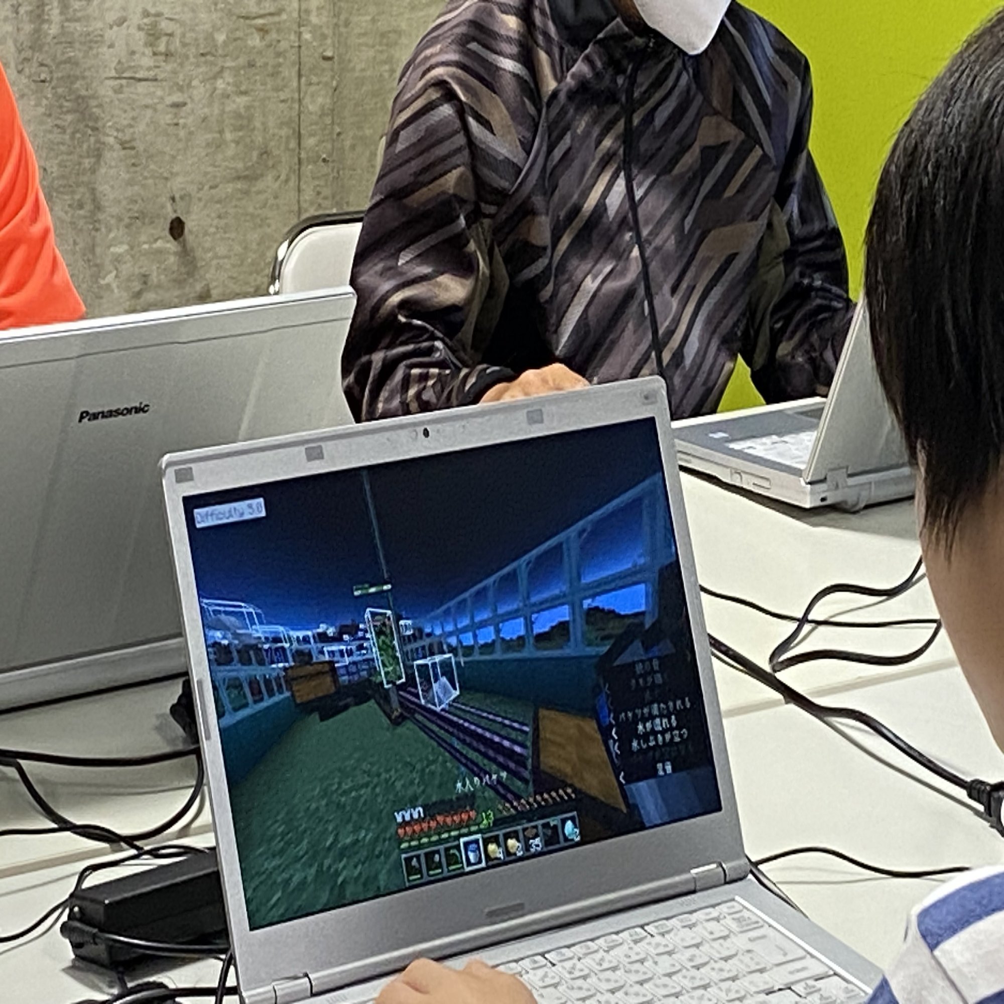 生徒さん達が互いに声を掛けあったり、教えあったりしながら遊ぶ事で、マイクラを理解し、パソコン操作に慣れる事を目的としています。