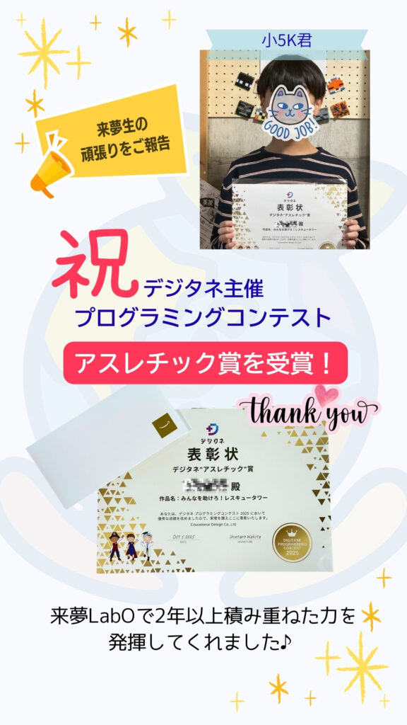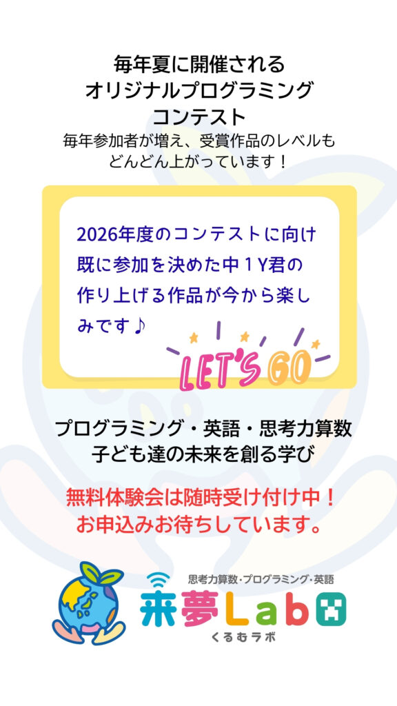 2025年オリジナルプログラミングコンテスト受賞! 2025年12月21日 最終更新日時 : 2025年12月21日 kurumu-labo \ 最新情報をチェック / FacebookXBlueskyHatenaCopy